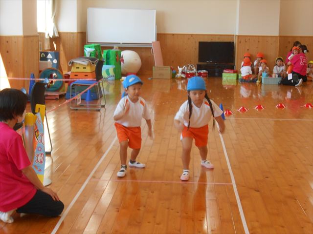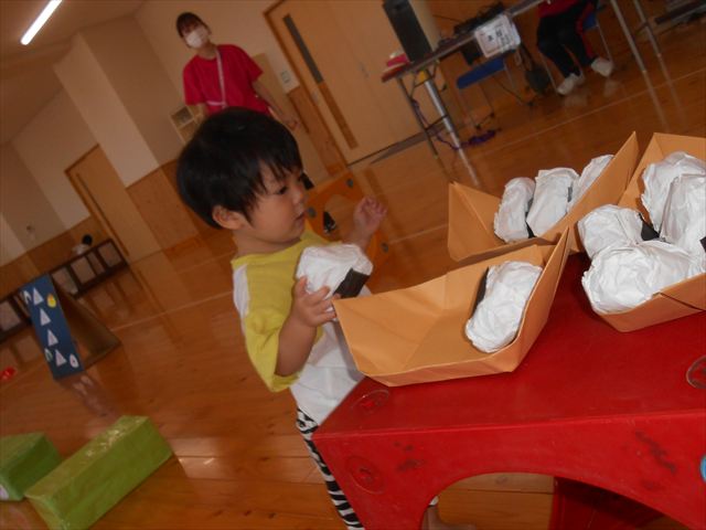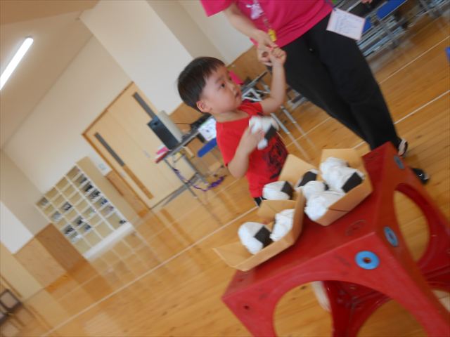 引き渡し訓練のあと、体育教室や運動遊び親子で楽しむことができました。また、防災食の試食を体験しました。お忙しい中、ご参加くださりありがとうございました。